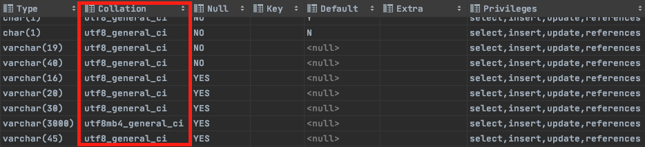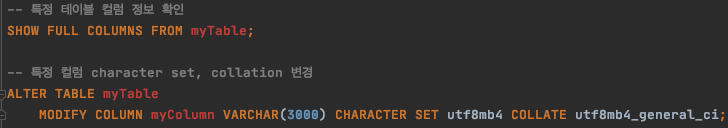 1. 우선 컬럼의 character set과 collation을 변경하여 테스트했습니다.