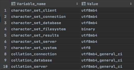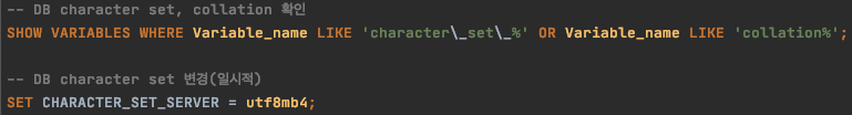 3. DB서버에 설정된 character set과 collation을 변경하여 테스트했습니다.