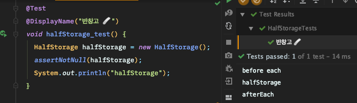 * intelliJ에서 결과 탭에 DisplayName으로 메소드명이 나오지 않는다면