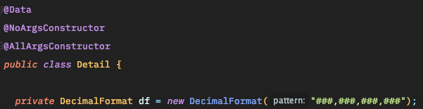 DecimalFormat("###,###,###,###");으로 서비스(@Service)에 생성하여 사용했는데