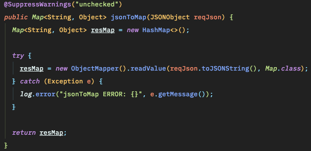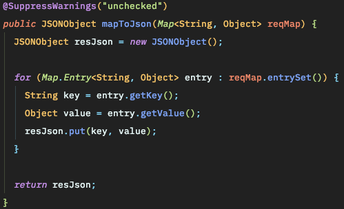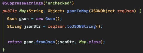 + @SuppressWarnings는 Map을 이용할 때 확인되지 않아 발생하는 경고가 보기 싫어 사용했습니다.