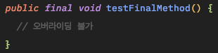 1. 메소드에 사용 : 오버라이딩 불가능
