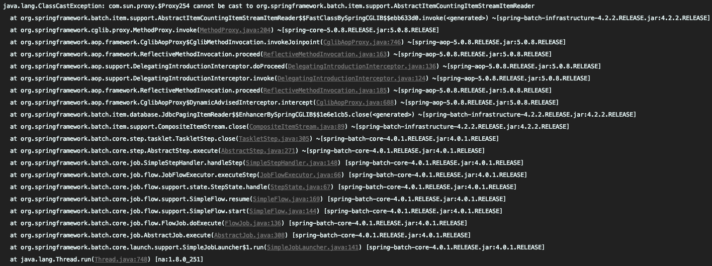 java.lang.ClassCastException: com.sun.proxy.$Proxy254 cannot be cast to org.springframework.batch.item.support.AbstractItemCountingItemStreamItemReader