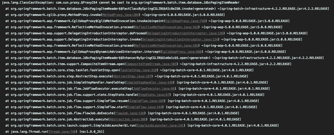 java.lang.ClassCastException: com.sun.proxy.$Proxy254 cannot be cast to org.springframework.batch.item.database.JdbcPagingItemReader
