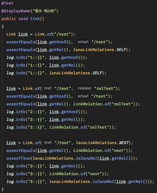 IanaLinkRelations를 사용하여 SELF, NEXT 등 Relation을 지정 가능.