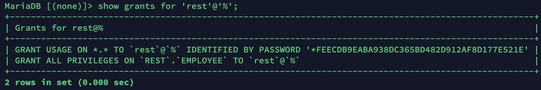 # grant select on db스키마.* to `계정명`@`접속 위치` identified by '비밀번호';