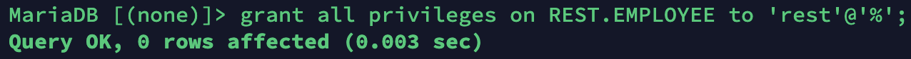 privileges로 권한을 부여하면 해당 테이블에 모든 권한을 부여할 수 있습니다.